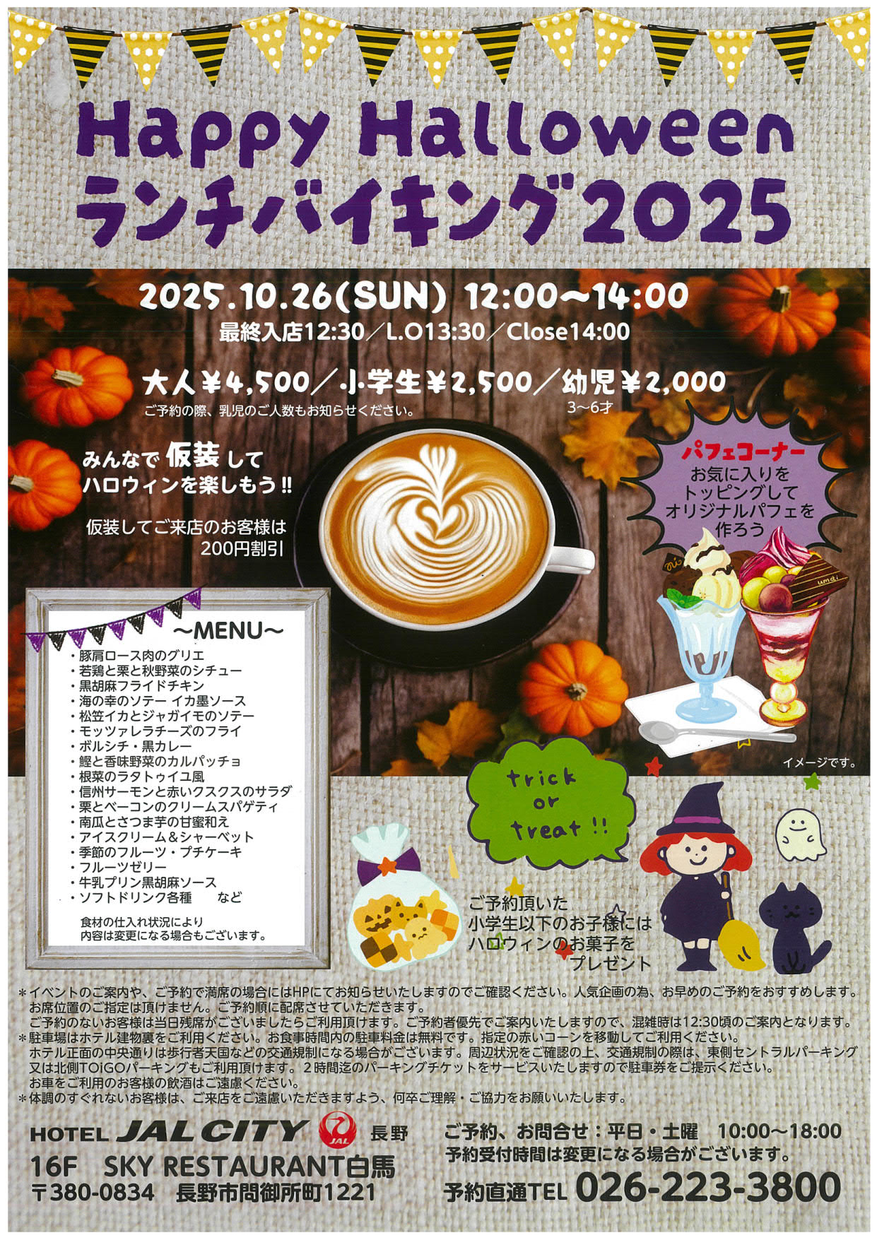 ※ご予約の小学生以下のお子様にはハロウィンお菓子をプレゼント