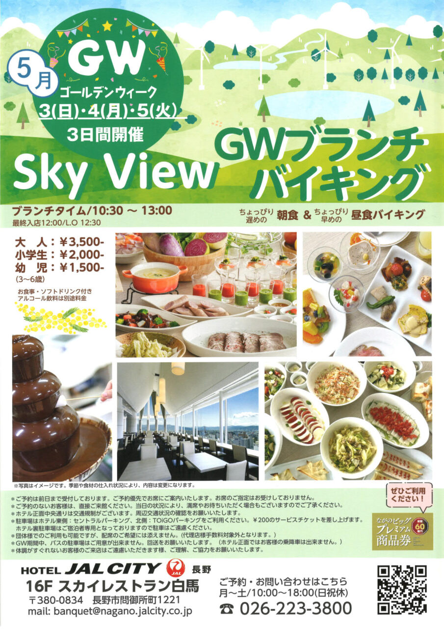 遠くに北アルプスと信州の山々、眼下に広がる長野の街並みを眺めながら、料理長のこだわりが詰まった逸品や、自然豊かな信州の旬の食材と郷土料理をお腹いっぱいお楽しみいただけます。初めての方も、以前から気になってた方も、宿泊なしでお楽しみいただけるチャンスをお見逃しなく!約40種類のメニューで皆様のお越しをお待ちしております。